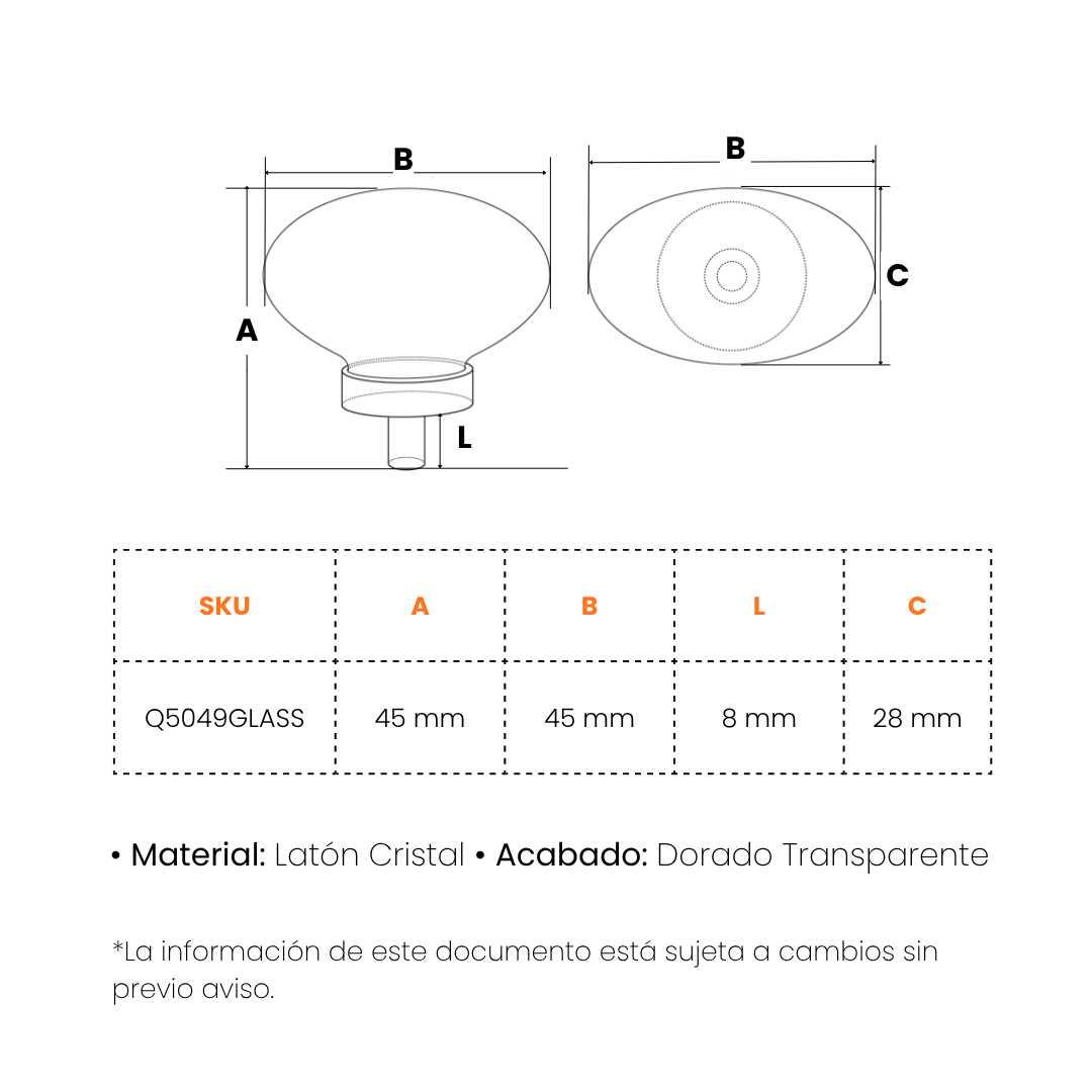 | Acabado | Dorado, Transparente |