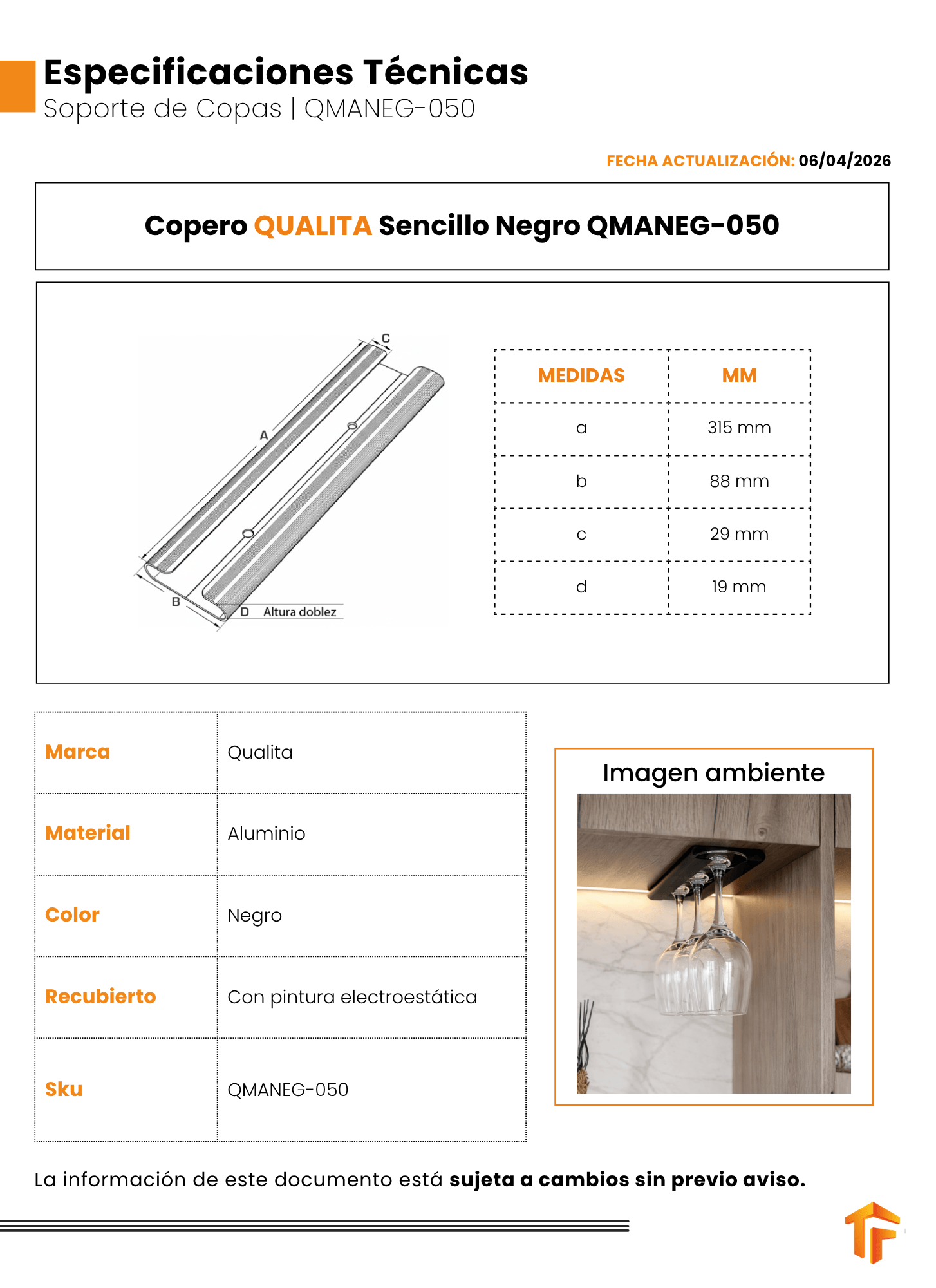 Aviso: Las imágenes son orientativas, el color y las medidas de las ilustraciones presentadas aquí pueden variar ligeramente respecto al producto final. Se sugiere confirmar información con su asesor comercial.