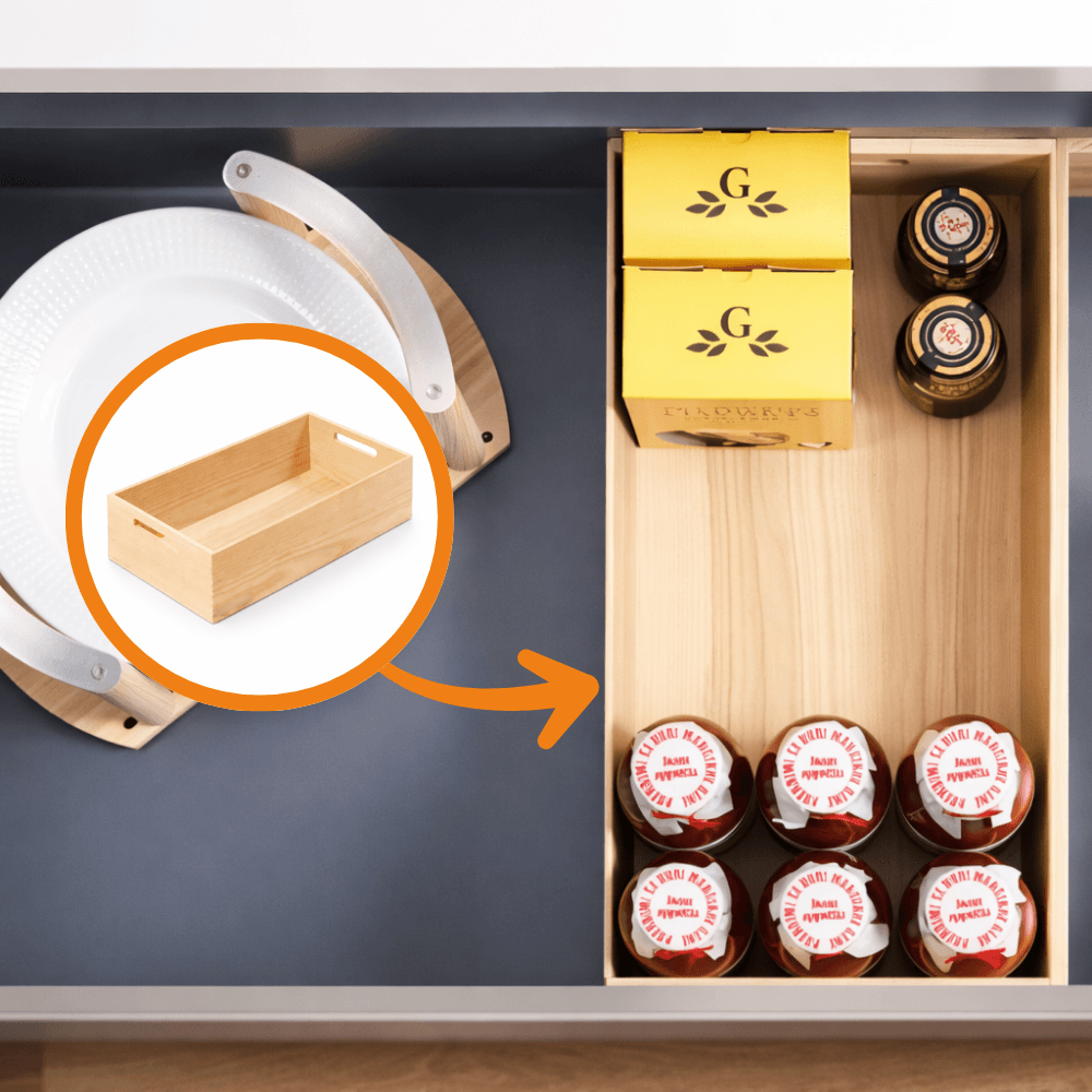 Organizador de cubiertos en madera de origen Alemán ideal para organizar los utensilios de la cocina. Su instalación es de sobreponer.