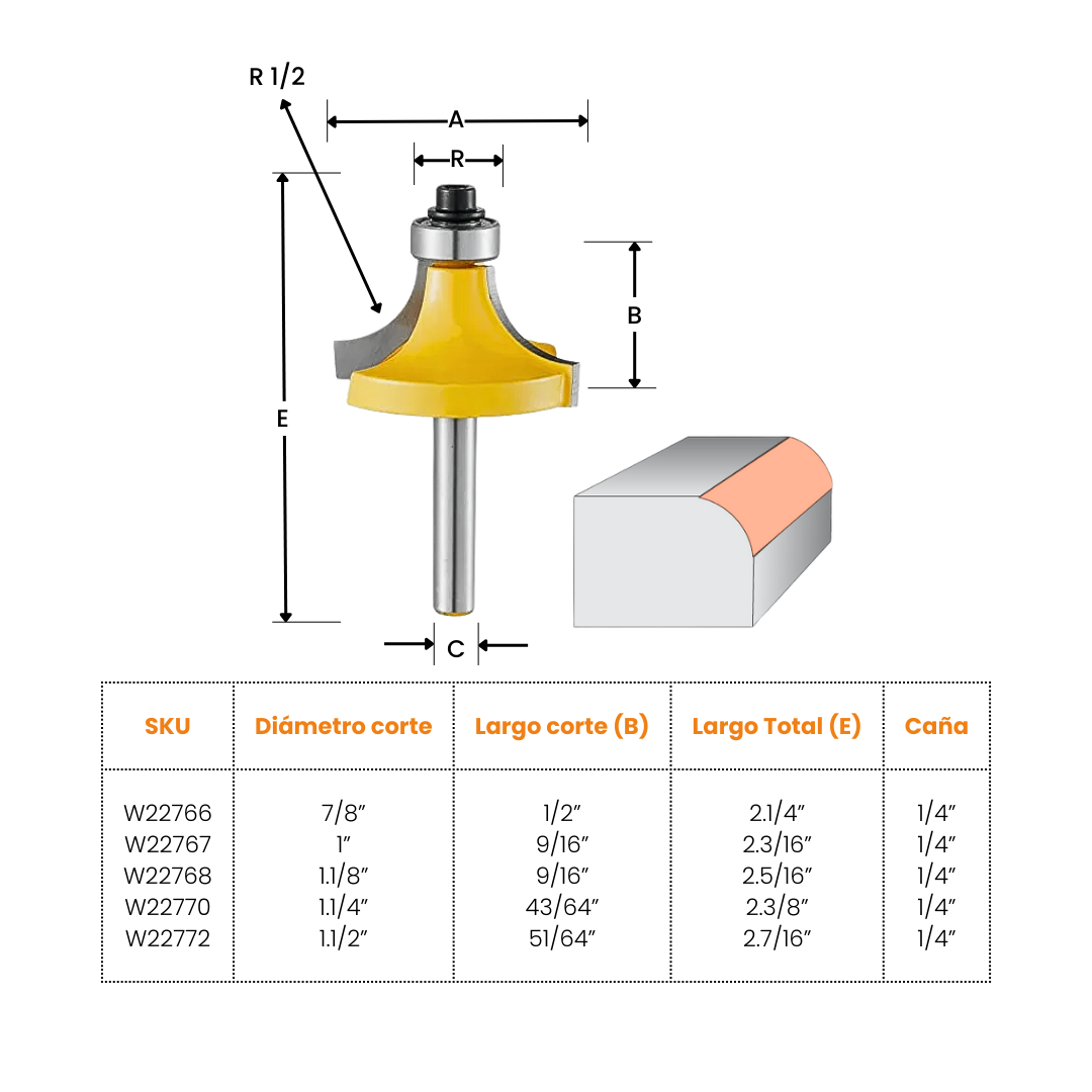 Fresa convexa de alta resistencia y durabilidad. Ideal para cortes de alta precisión, permite crear acabados circulares perfectos en madera, muebles, cajones y puertas. Su diseño asegura un desempeño eficiente, logrando resultados profesionales en cada trabajo.