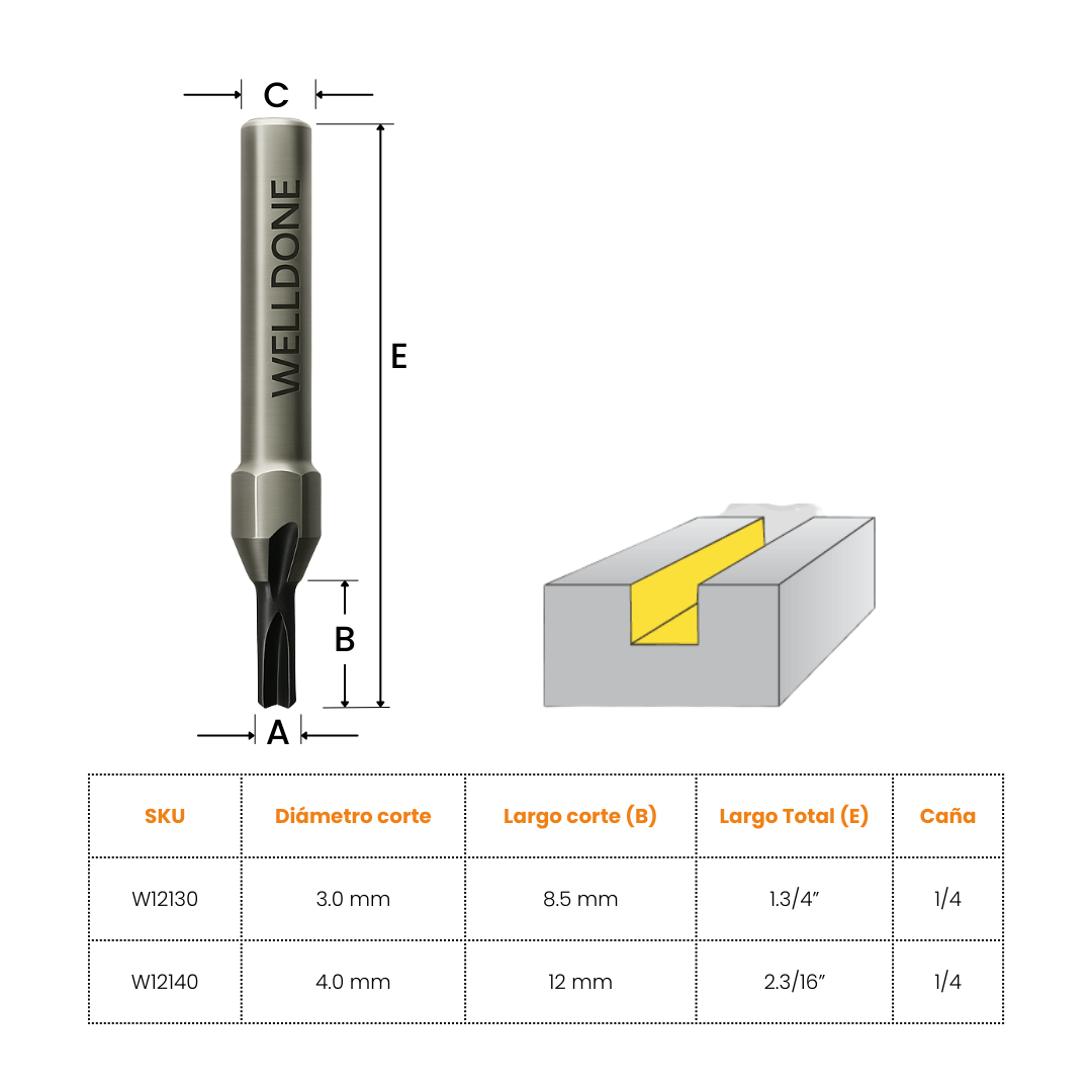 La fresa de corte recto está fabricada en acero sólido tipo S2 con punta de tungsteno sólido, lo que garantiza alta resistencia, durabilidad y cortes precisos. Diseñada para ranurar y cortar madera, ofrece también un excelente desempeño en el corte y ranurado de acrílico, logrando acabados limpios y profesionales.