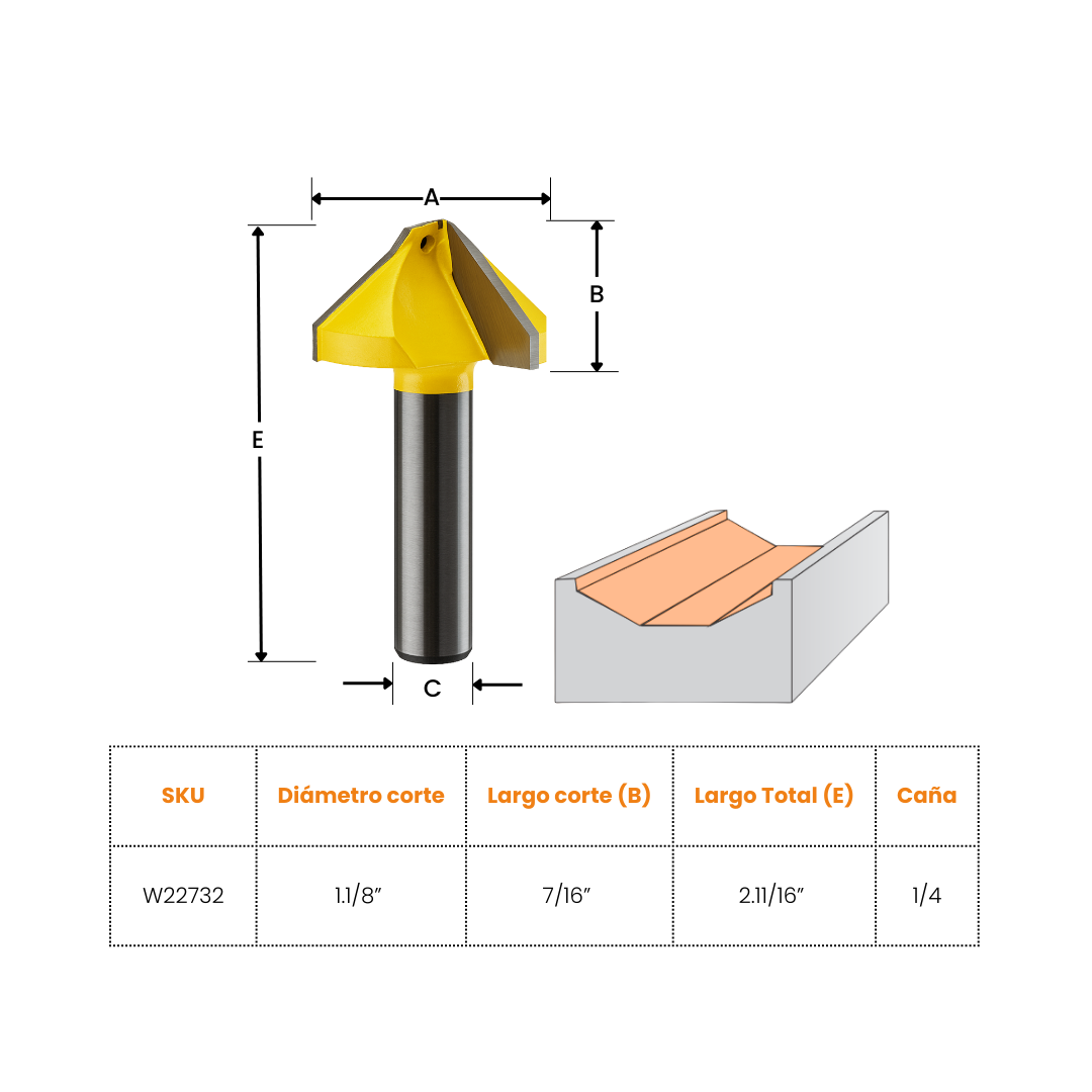 La fresa para realzar paneles está diseñada para crear cortes decorativos y precisos en puertas, frentes de cajones y paneles de mobiliario, ofreciendo un acabado elegante y profesional. Su ángulo de corte de 25° permite lograr superficies limpias y transiciones suaves, resaltando la estética de los proyectos de carpintería.