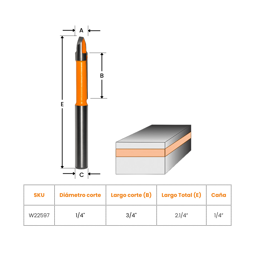 Fresa relimpiadora de corte recto fabricada en tungsteno sólido de alta resistencia, diseñada para ofrecer cortes limpios, precisos y prolongar la vida útil de la herramienta. Su filo optimizado permite trabajar con gran eficiencia en maderas duras, blandas, aglomerados, MDF y superficies laminadas como fórmica, garantizando un acabado uniforme sin despostillados.