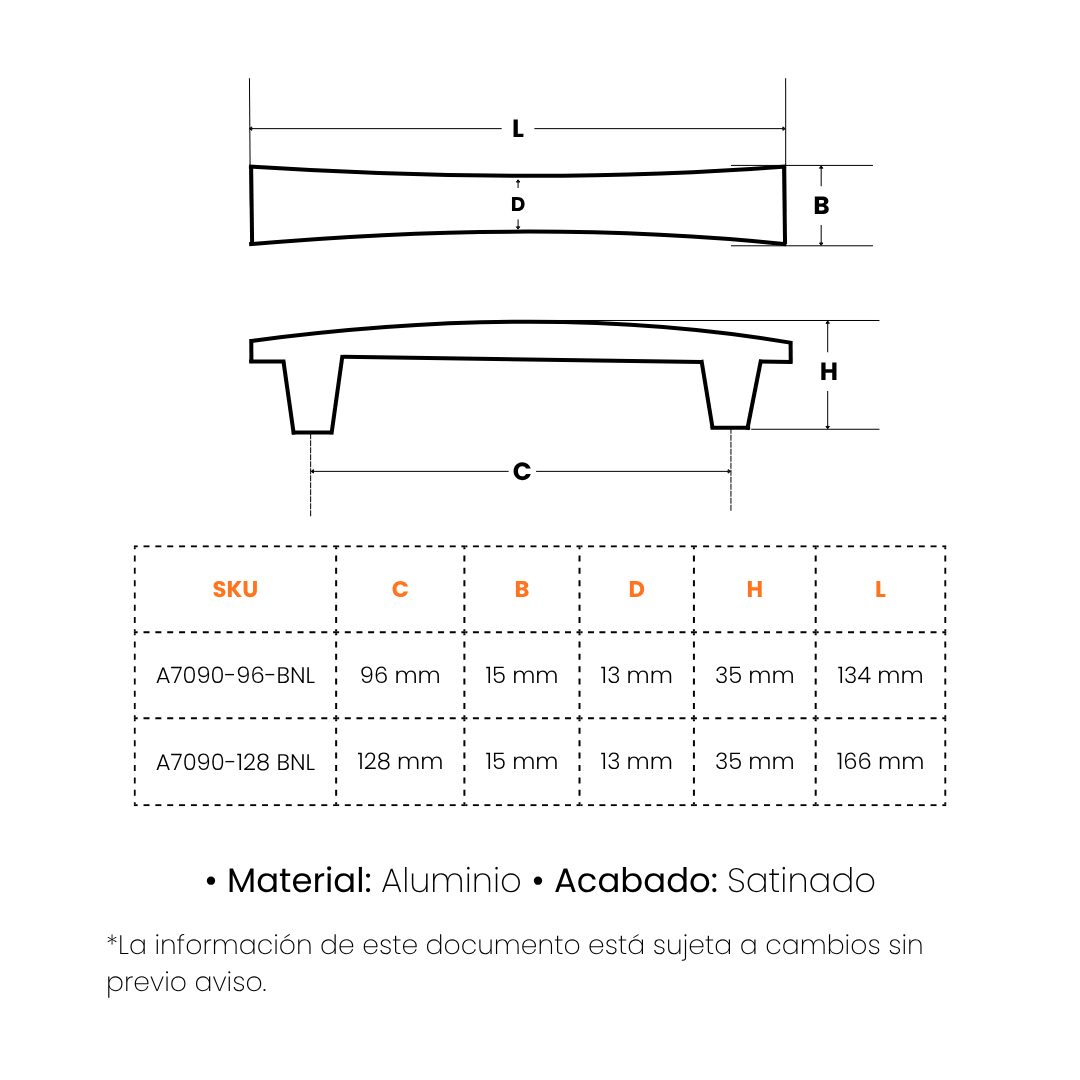 Manija en aluminio, ideal para muebles de cocina, clósets, baños y todo tipo de mobiliario moderno. Su acabado elegante aporta un toque minimalista y sofisticado, mientras que su forma ergonómica facilita la apertura y cierre de puertas o cajones.