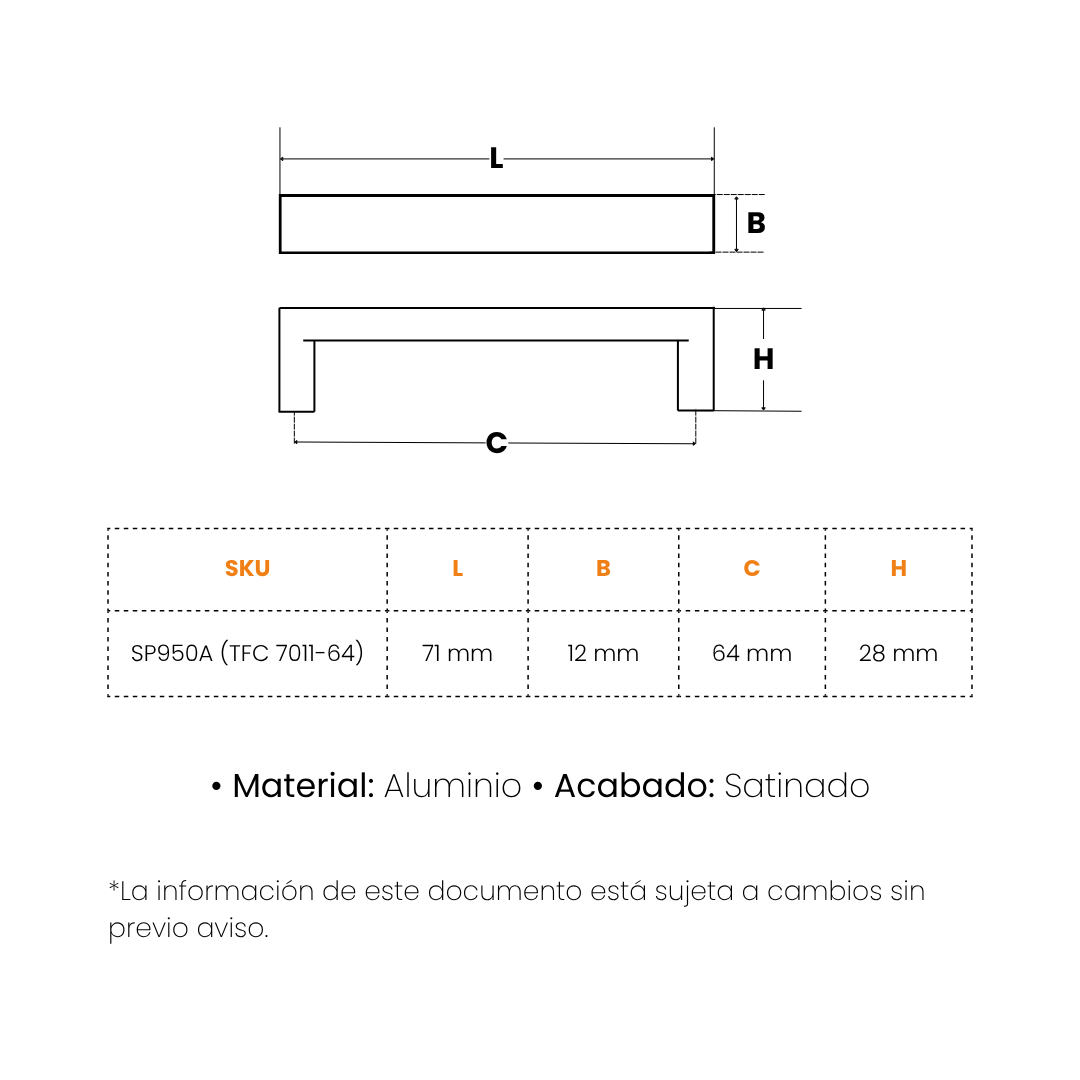 Manija en satinada con diseño en forma recta, ideal para muebles de cocina, clósets, baños y todo tipo de mobiliario moderno. Su acabado elegante aporta un toque minimalista y sofisticado, mientras que su forma ergonómica facilita la apertura y cierre de puertas o cajones.