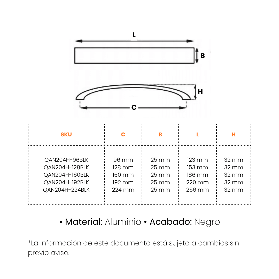 Largo entre Huecos mm | 96 MM, 128 MM, 160 MM, 192 MM, 224 MM |