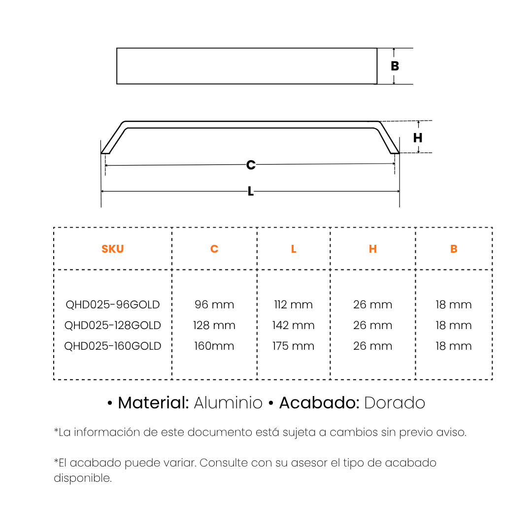Largo entre Huecos mm | 96 MM, 128 MM, 160 MM |