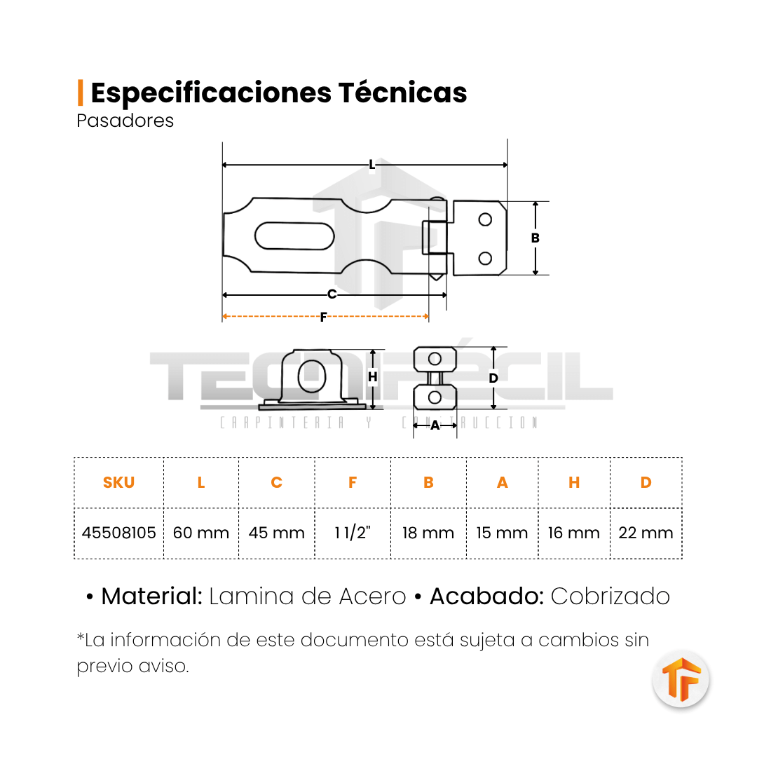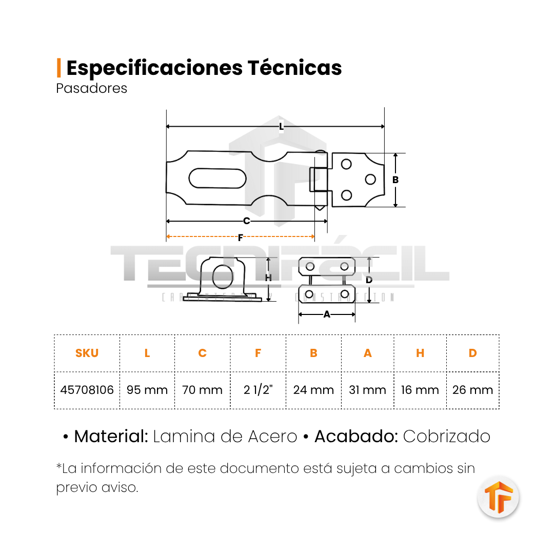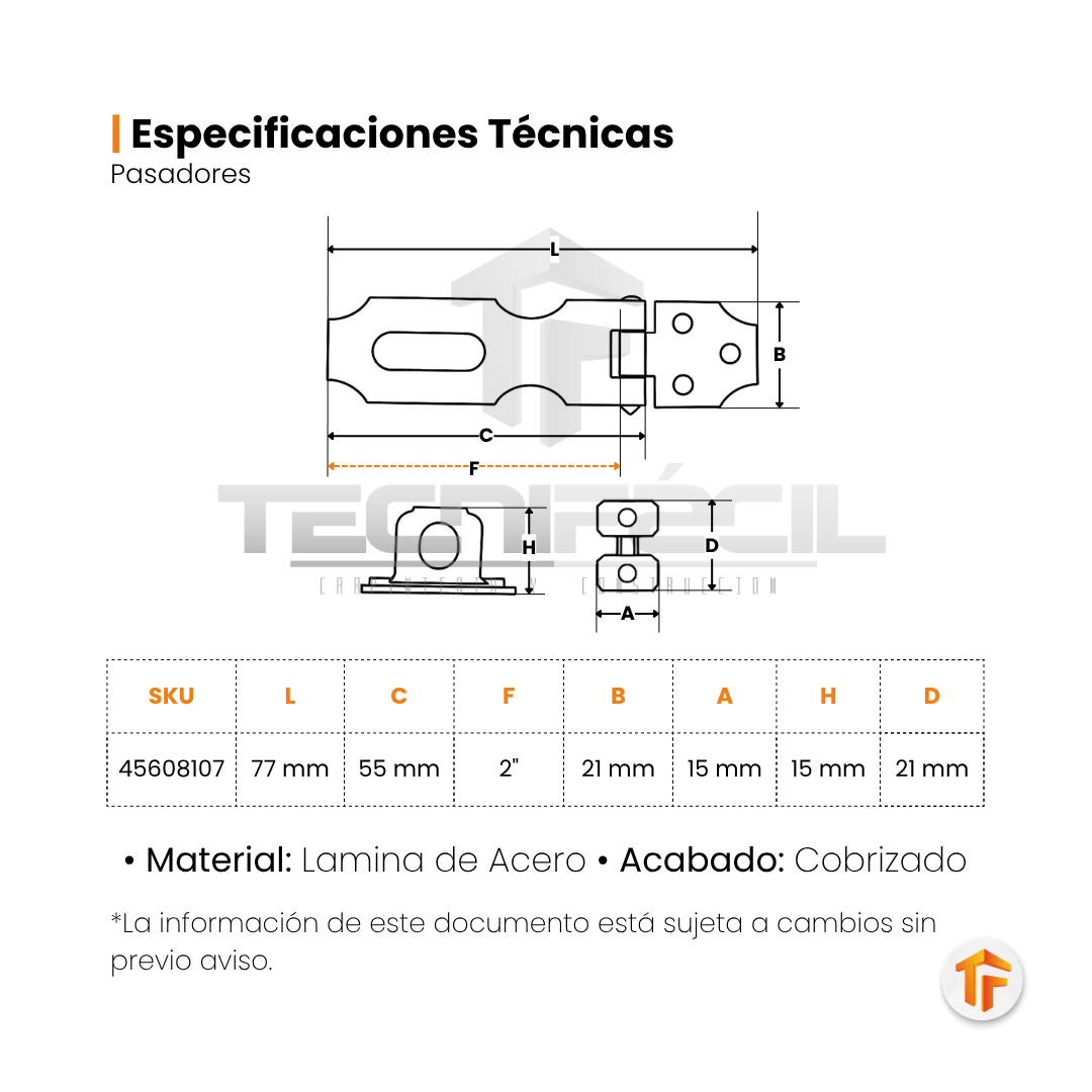 Porta candado resistente y funcional diseñado para brindar seguridad adicional en puertas, muebles o compartimentos. Su estructura metálica permite instalarlo fácilmente y mantener un cierre firme al combinarse con un candado. Ideal para proteger espacios o pertenencias, ofreciendo durabilidad y confianza en cada uso.